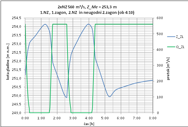 S hidravlično analizo so bile za sedanje stanje in za posege na kanalih obravnavane hidravlične izgube v kanalu, moč na turbini, maksimalna kota v dovodnem kanalu, minimalna potrebna potopljenost vtoka, minimalna kota zgornje vode pri zagonu elektrarne ter problematika sekundarnih valov. Na podlagi obratovalnega leta 2015 je bila izračunana povečana proizvodnja električne energije pri obravnavanih posegih v dovodnem in odvodnem kanalu.